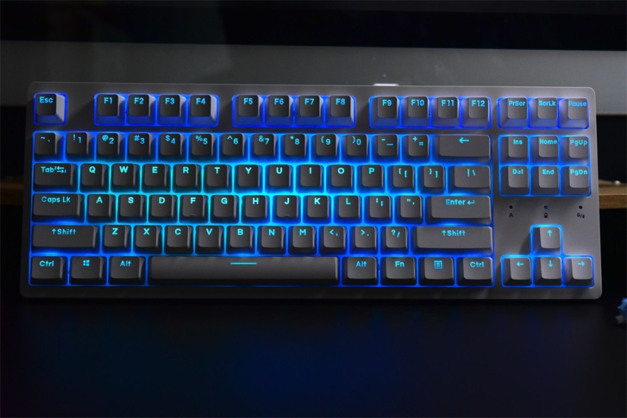 这款的键帽透光很舒服,作为一个小菜鸡,个人感觉这套PBT键帽可以打9分。