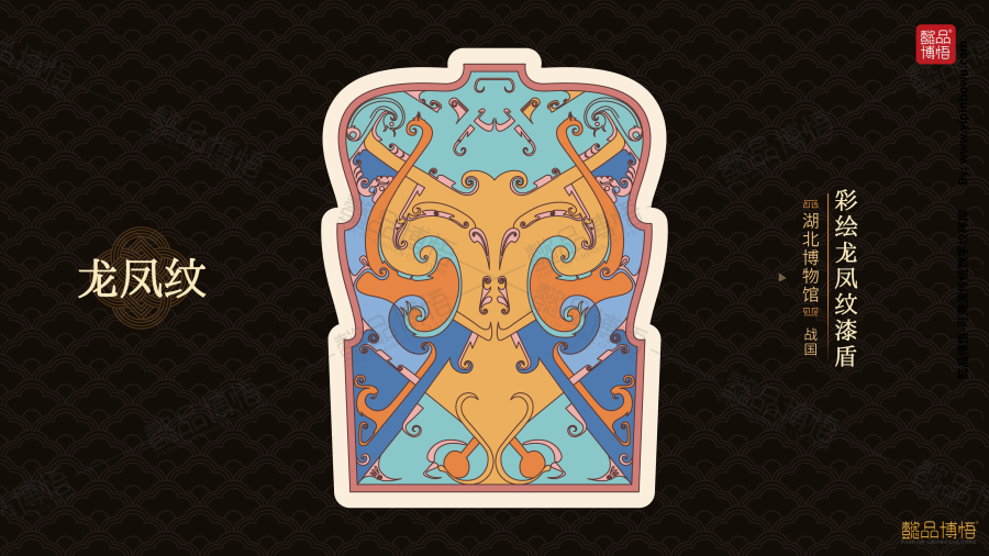 漆盾正面绘有龙纹与凤纹,龙飞凤舞,图案生动,寓意“龙凤呈祥”,兼具艺术与礼仪功能,是战国漆器的重要代表。