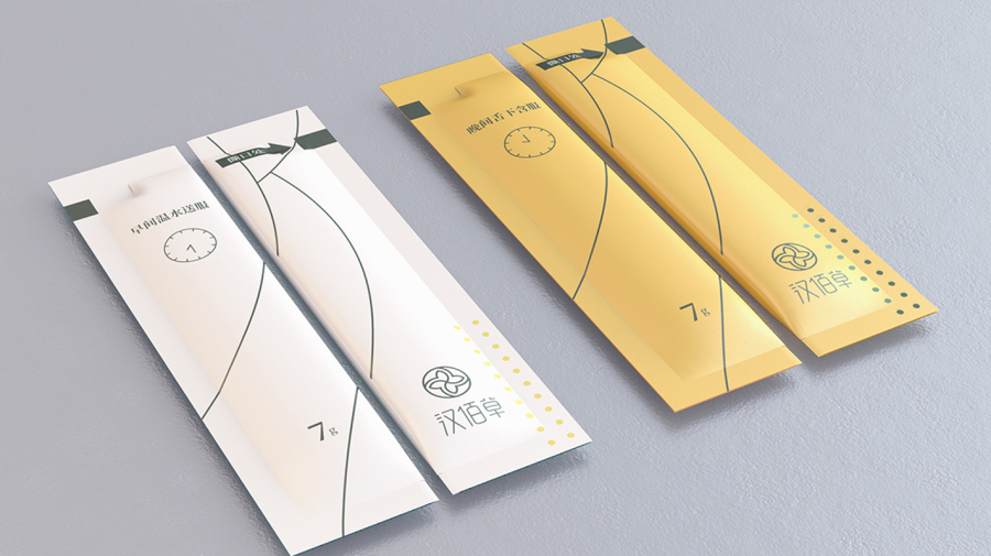 在产品的包装设计上,采用创新的双开结构,方便消费者食用早晚不同产品。同时采用轻量化设计,让消费者便于携带。同时简单精致的配色和图案,提高产品的视觉精致感。Logo的设计,将汉佰草的理念清晰的传递到消费者心中,可作为冰箱贴的Logo形态,便于品牌的进一步传播。