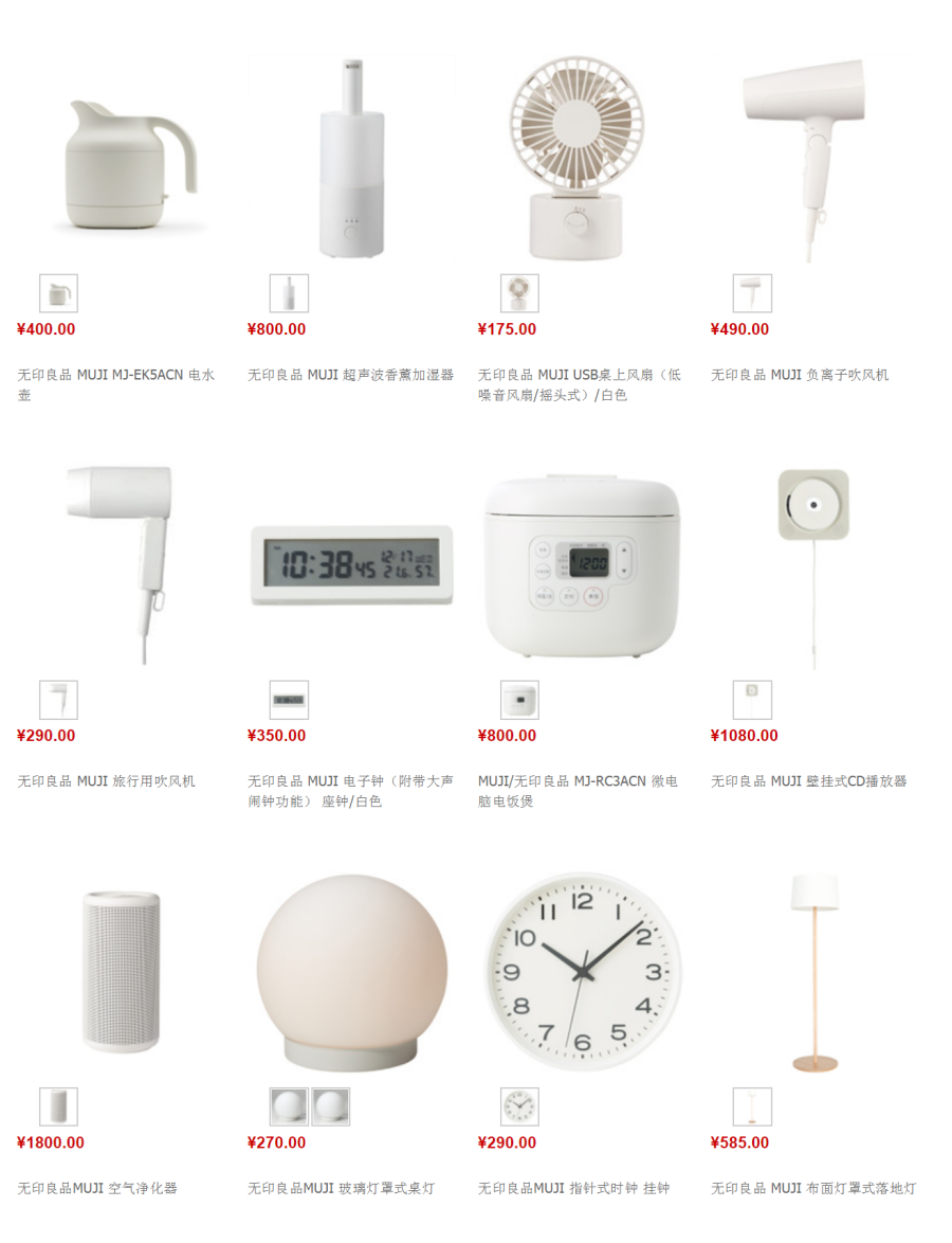 无印良品,直观的意思就是弱化LOGO和优良品质,虽然没有LOGO,但是它却成功的把它的理念推广到了全球。我们看一下无印良品的产品: