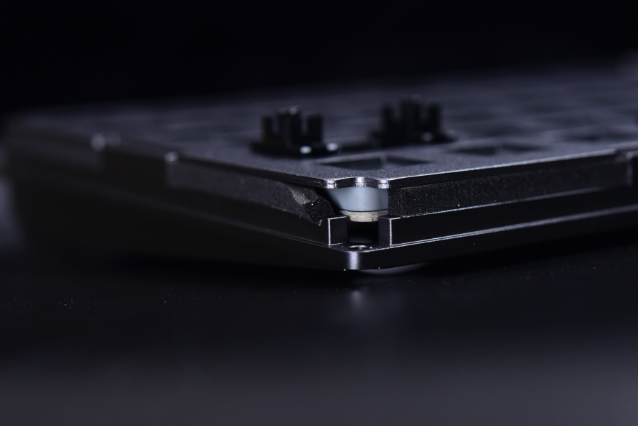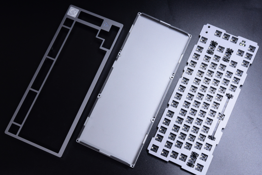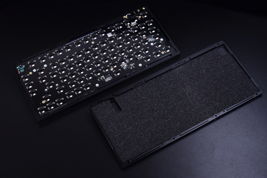 内胆算上底座的消音棉一共四层,分别是金属定位板、硅胶层、PCB板和底棉。上下盖之间的空间不是多,所以即使内胆不是很厚也能实现去空腔化的结构。