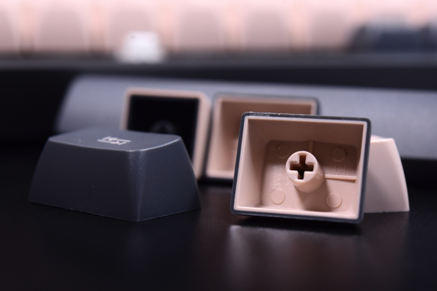 达尔优作为一家老牌外设厂,键帽一直都不错,这次PBT双色注塑键帽触觉和视觉上的颗粒质感都非常不错。达尔优的PBT键帽突出一个稳字。