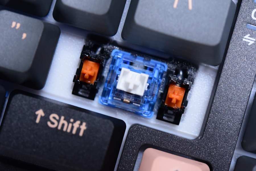 这次还是只能选达尔优的天空轴V3,虽然是21年初的轴,但在21年却已经更新了2次,轴柱围栏结构除了防尘以外,稳定性也加强了,轴体上盖改用透明PC料透光度也增强。