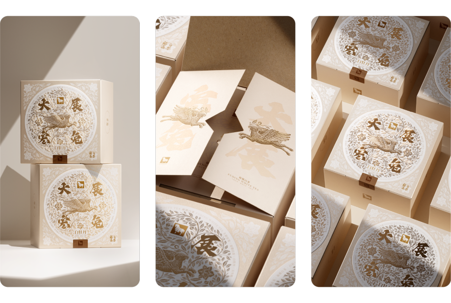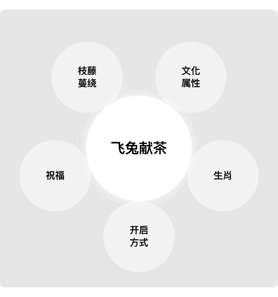 大展宏兔以“飞兔献茶”为主题,通过飞兔的形象传递团圆与幸福的愿望,结合飞兔和白牡丹元素,创造了一个具有文化价值和情感连接的设计,传递美好的祝愿。