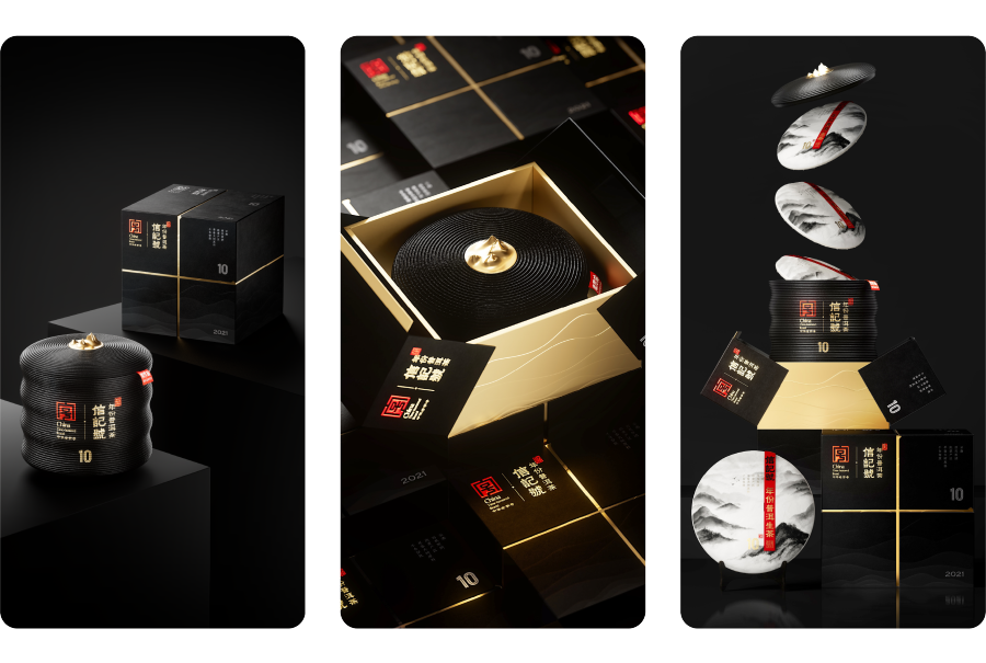 我们以“开启一个十年”为主题,以活字印刷、山丘和年轮为辅助,为八马茶业信记号年份普洱生茶完成包装设计与核心传递。以黑金色调展现历史的厚重感和高端质感,从而传递出茶的深度和文化价值。