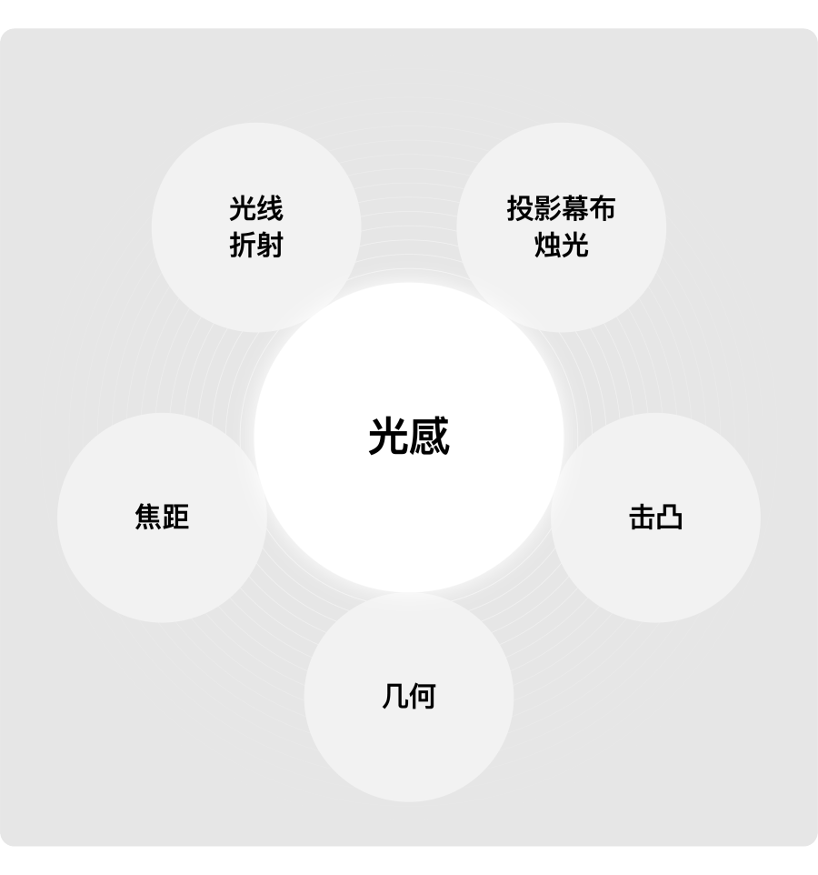 以光为媒介,将模糊的想象变为清晰的现实,把抽象的情感具象化为可触可感的体验。从光的线性延展汲取灵感,以简洁的几何纹理和柔和的色彩,诠释光线折射与交错的美感。