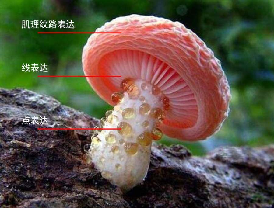 3. 主讲造型分析,前面发布的设计讲过基础点线面,所以这些要点不能缺少,而且自然本身亦是具备这些构成如图中的蘑菇身上体现得淋漓尽致~