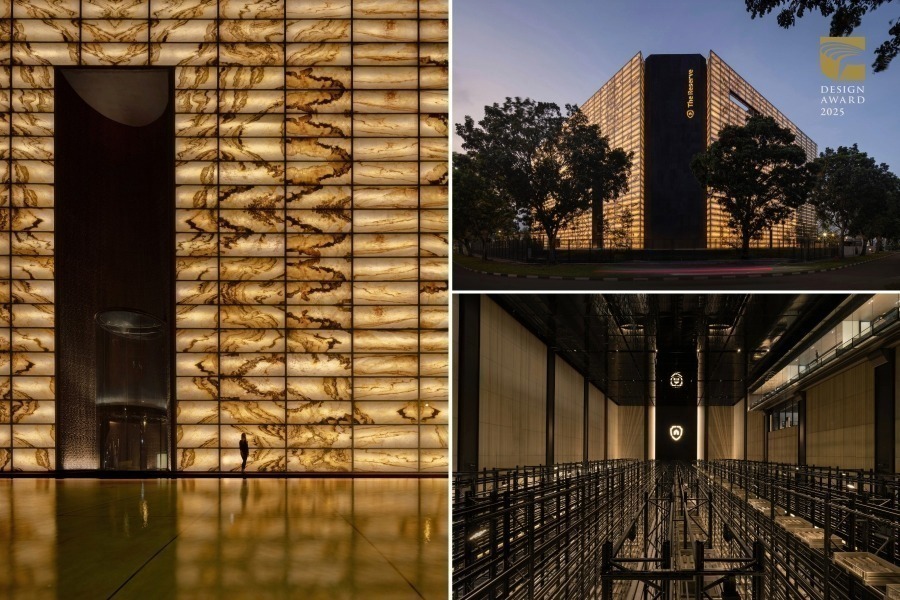 在空间设计类,筑点设计股份有限公司的”台铁观光列车:山岚号、海风号”,改造自退役的EMU500电联车,以山海意象为灵感,通过大面开窗、随天色律动的照明与空间中的柔和曲线语汇,营造兼具在地特色与沉浸氛围的旅乘空间,为铁道观光带来全新体验。泰国VMA Design Studio的”Double B Hostel”,坐落于旧城狭长街廓中,设计团队结合在地材料、传统木作工艺与现代工法,创造出具流动感的木质立面,并结合开放中庭巧妙引入自然光与通风,营造融合在地文化与营造交流氛围的独特休憩空间。新加坡MonoLab Studio的”The Reserve”,将旧电子仓库改造为贵重资产保管库,以玛瑙夹层玻璃立面象征传统与新兴科技的交会,内部则在保留建筑形态的同时,通过两倍高的大门、特殊层架与空间动线等设计,营造戏剧性的氛围,诠释保管库神秘的场域特质。