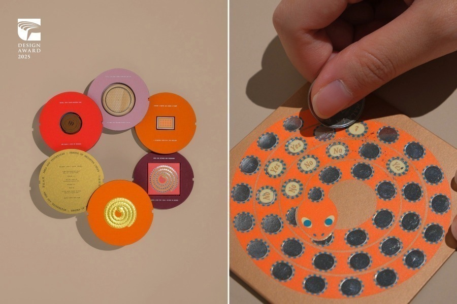 在传达设计类得奖作品中,美感细胞、嘉宝美研所的”探索台北:华语学习绘本”,以台北知名景点为主题,运用情境式图像打造华语教材,并通过轻薄装帧的便携设计,将语言学习融入延伸至城市探索与日常体验,展现语言教育与在地文化结合的创新思维。波兰TOFU Studio的”CLEAN CITY GDANSK”,将格但斯克字首的字母”G”,巧妙转化为循环再利用的符号概念,诠释废弃物资源化的可持续理念,并结合一系列图像系统,为市政府的废弃物管理和循环经济教育品牌CMG,打造具现代感且简单明了的全新品牌识别。马来西亚设计工作室Fictionist Studio的”Shed Off Yesteryear; Shades of Brighter Cheer”,以生肖蛇蜕皮的意象重新诠释春节红包,通过除香、静心静气、点燃火柴、刮开银箔等四步骤开箱,将传统送礼重新构想为放下过去与象征更新的交流仪式。