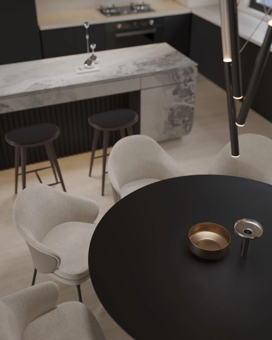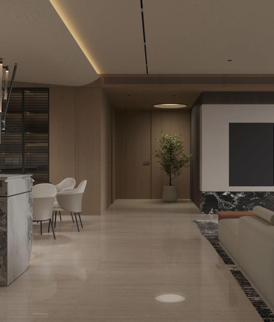 对我来说,最大的创作契机就是遇到同频且完全信任我的业主。做这个案子时,考虑到当下快节奏的生活,我想为客户营造一种自由极简的、内敛奢感的、自由松弛的生活场景空间,使居住者能有很好的舒适体验。基于这些,我将其定位为「雅奢」风格,把各种元素有效结合。这些小设计能让居住者亲近自然、释放压力,提升空间的舒适感和治愈性。