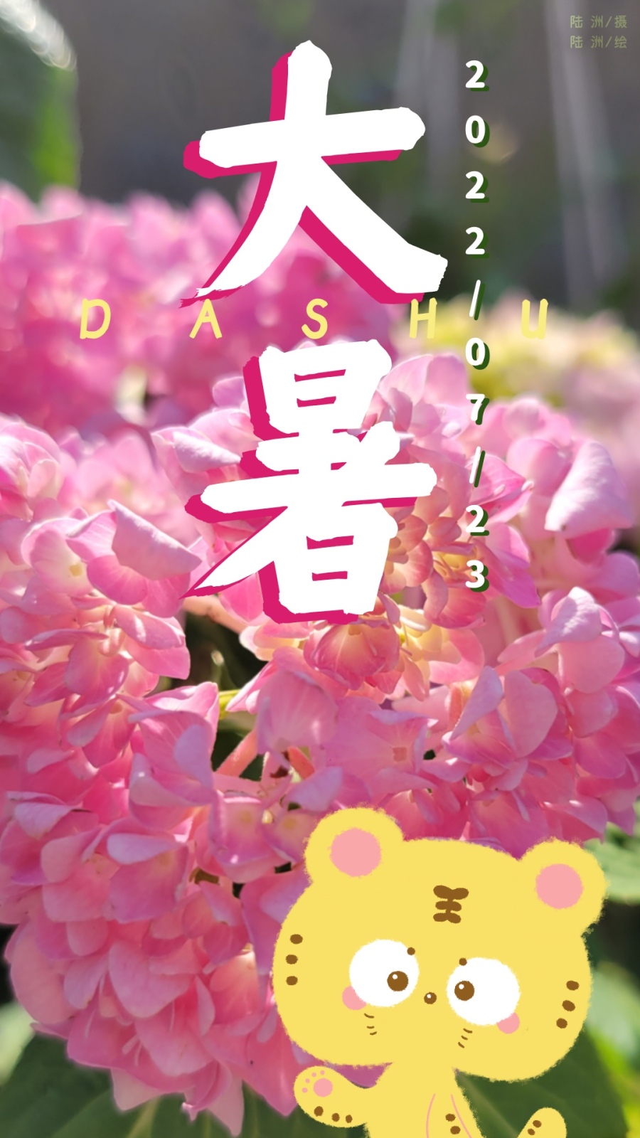 【大暑】夏日炎炎,绣球花热烈绽放。阳光透过花瓣洒落,边缘散发出光芒。一直觉得粉红色和黄色的是浪漫的配色。