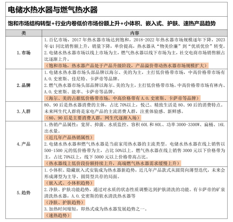 我国小家电产品结构,从物美价廉向优质优价转变。2023年Q1热水器市场微回暖,以下是对于热水器市场的一些调研见解: