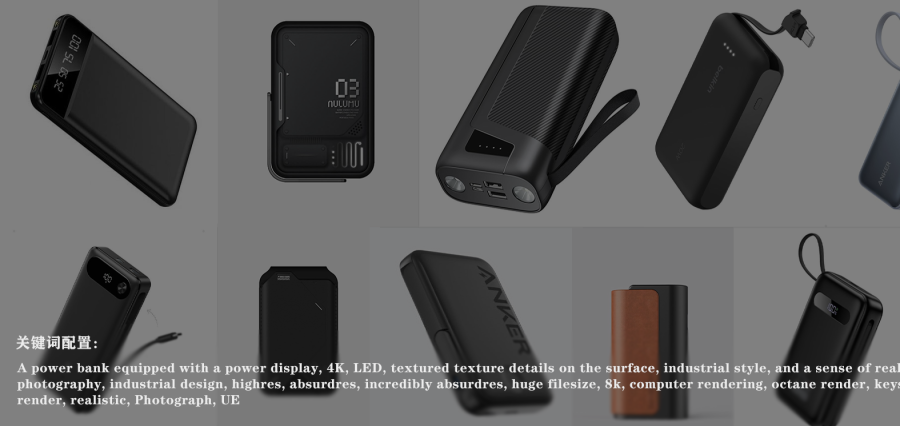 第一轮素材是不限造型,只将条件限定为充电宝