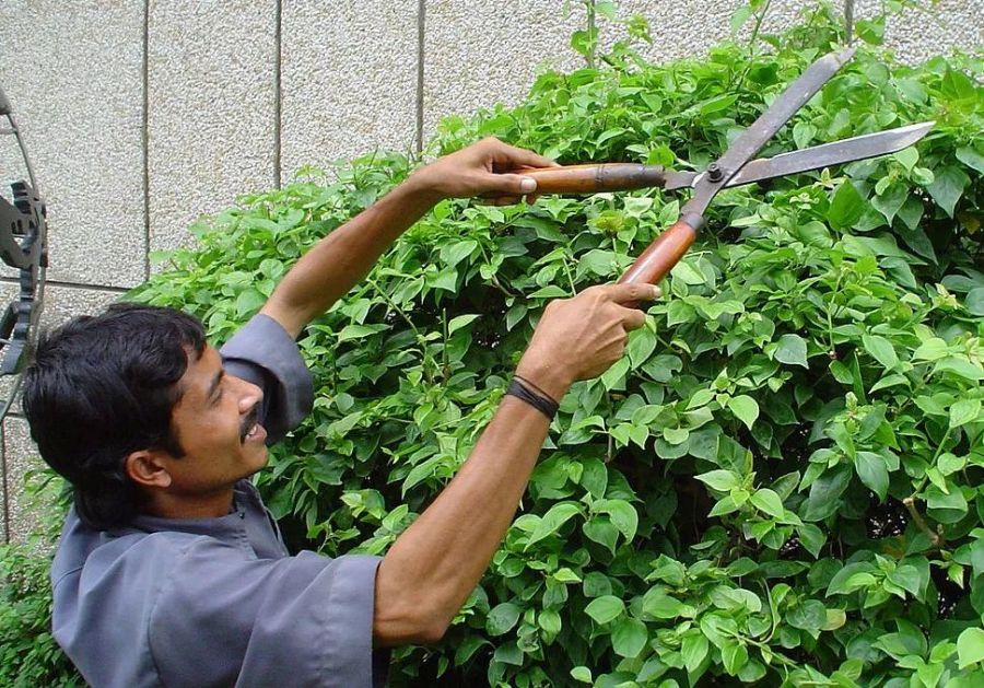 绿篱剪是个啥?它是一种用于花园植物修剪作业的工具。在人工便宜的地方,一般都是用大剪刀来修剪的。比如下图。
