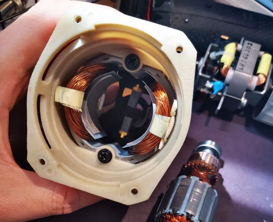 那么拆开一个电动工具后,最重要的一步就是要识别出电机和齿轮箱这两部分和它们的组合方式。