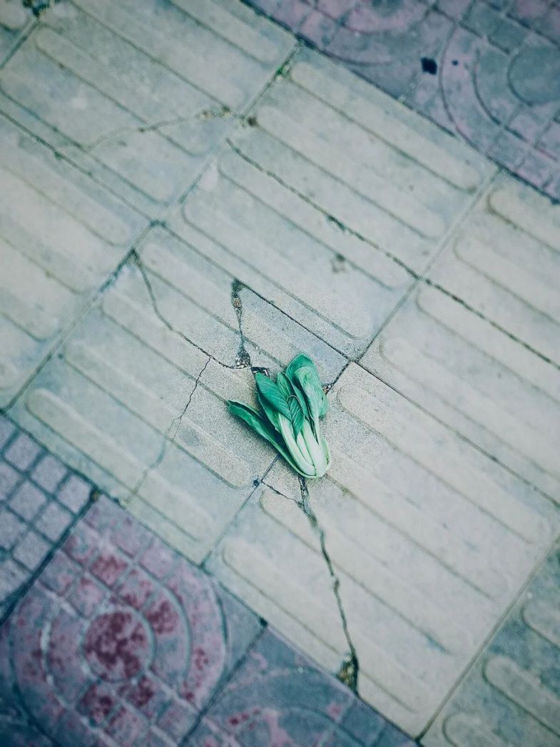 观察生活细节,再平凡的场景也会给你意想不到的体验。比如,一棵孤独的青菜,出现在了它不该出现的地方。