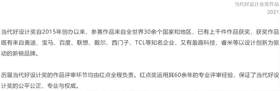 国内有名的几大奖项之一,P.S. 我觉得普象的TOP奖质量也不比国内外大奖差,说实话