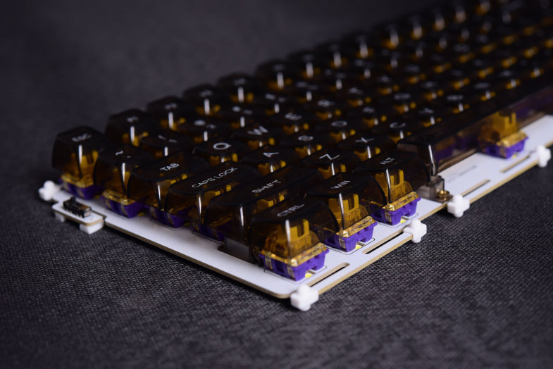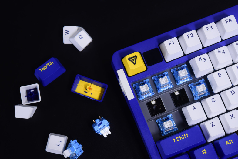 A87热插拔系列延续了达尔优A系列的磁吸上盖和钢定结构的设计,轴体方面则是首次使用自家的定制轴,天空轴与紫金轴。
