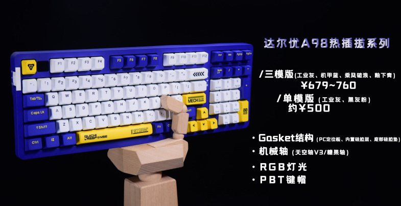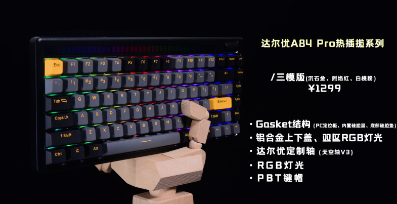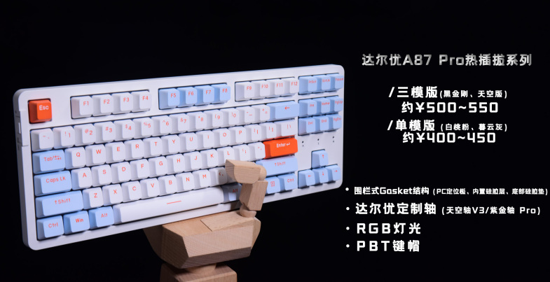 在推出A87三模热插拔版本后,达尔优后续的新品就开始卷了,每一款都是直接上三模、热插拔和RGB。