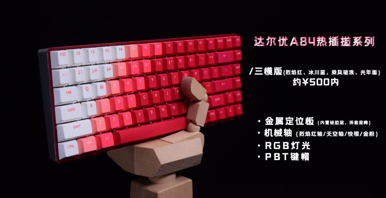 达尔优A84烈焰红可谓是达尔优A系列又一次跃升之作,惊艳的键帽配色和热门配列,在首发时期出现了量产少有的断货情况。
