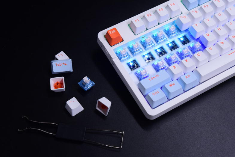 A87热插拔系列目前看到的总共有5个配色版本,而单模版本则是后续各种A系列都在沿用天空版和紫金版。