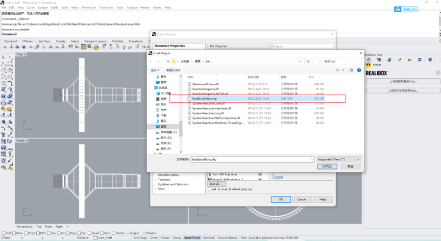 3.打开Bin文件夹内Realibox Rhino.rhp文件,点击确定即可完成插件导入;