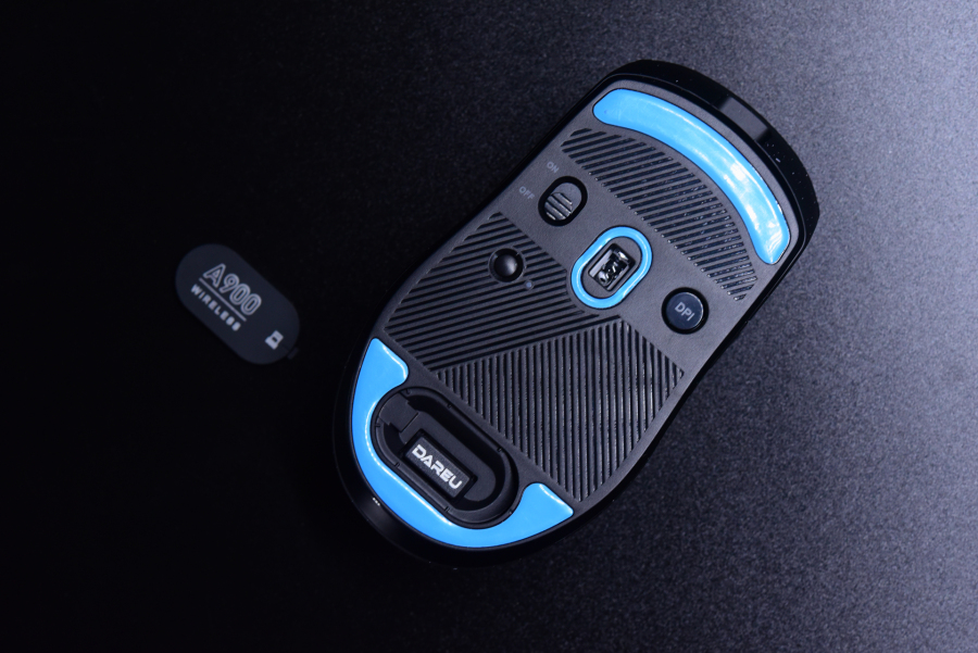 这个A900在连接模式方面也直接给大伙上到顶配,除了常规的有线连接和2.4G无线以外,还加入了蓝牙连接模式,切换开关等功能按键都集成在鼠标底部。得益于三模的连接方式,在游戏和办公上都很得劲(当然450的价位很少人专门买来办公用)。