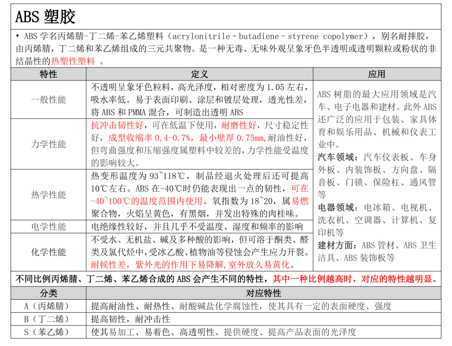 • ABS塑胶特性,如下图: