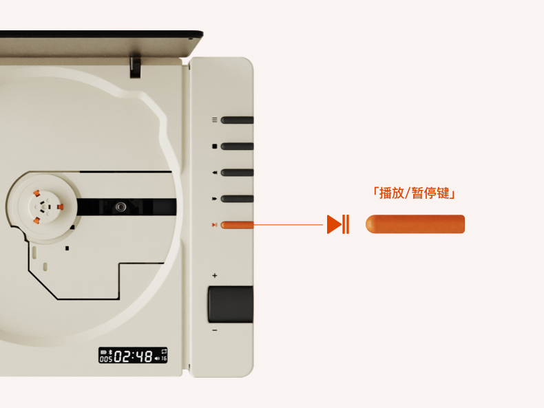 我们为R300保留了全部的物理按键,没有使用触控、滑动或其他感应式交互。这并不是出于复古,而是因为CD本身就是一个实体介质,它需要一个物理的行为动作来完成播放的开始与结束。