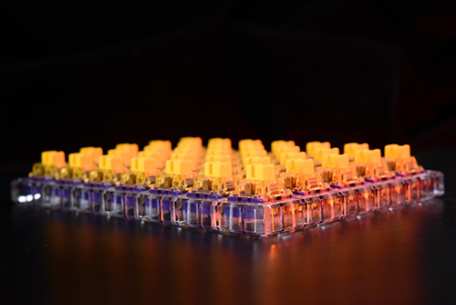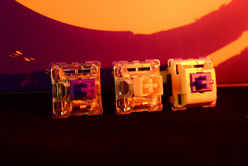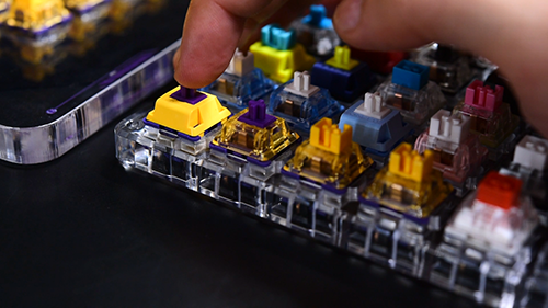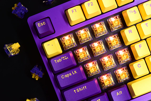 紫金轴Pro的轴芯颜色换成了黄色以后,和达尔优的紫金版A87还是非常的搭配。