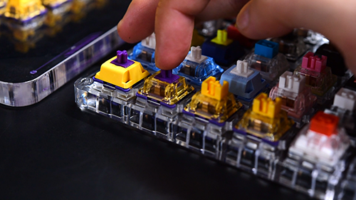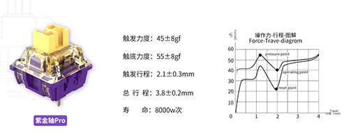 紫金轴V1和V2采用提前大段落手感设计,轴体下压的时候能感受到第一段键程很短,第二段键程会比较长。