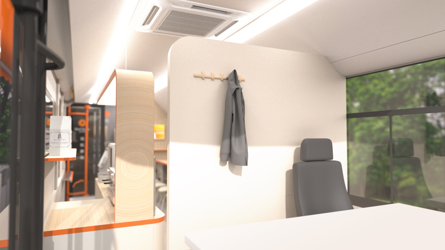 在保有原车内电机的基础上,通过内外部改装,满足充电场站工作人员及司机的日常所需,同时提升营运司机等待过程中的幸福感。