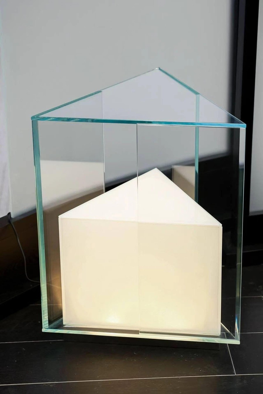 例如《瞬息柜》的设计理念,正是基于这种反差,希望用玻璃凝固那些无形的瞬间。它的造型灵感源自自然界中风、水等无形元素,将这些抽象概念转化为具体的产品。《胧光边几》则是对玻璃进行几何解构与重组,通过特殊工艺,把完全透明的玻璃,转化为呈现模糊透光美感的作品,兼顾实用性与装饰性。
