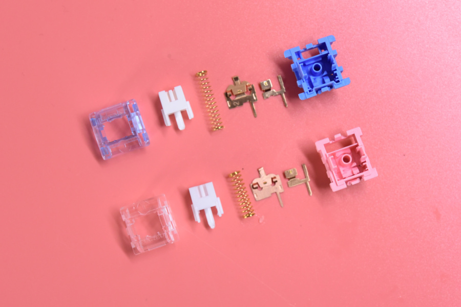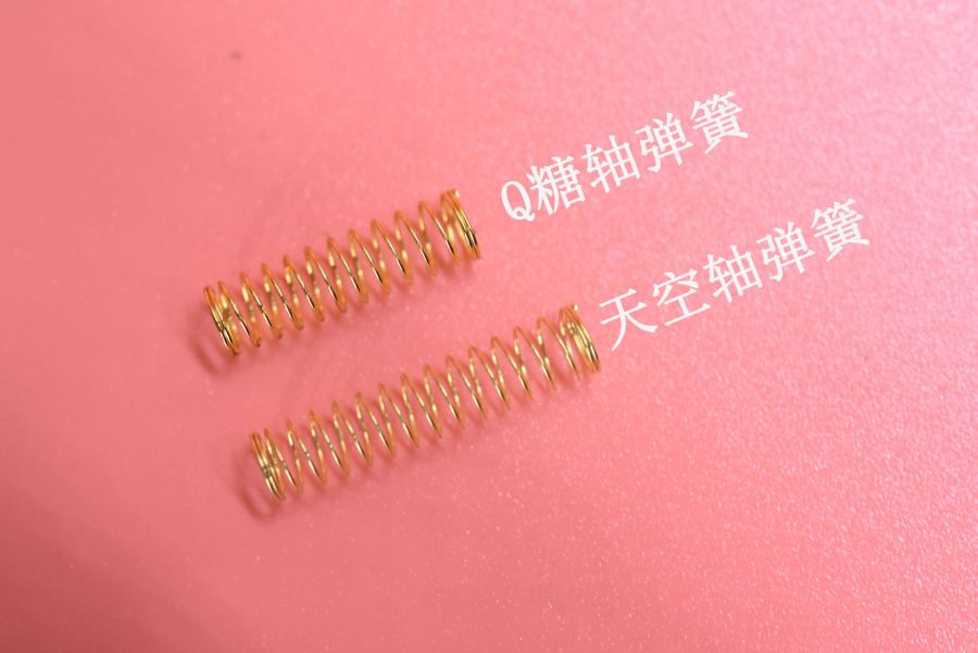 而弹簧方面也是比较明显的不同,Q糖轴的弹簧会更短,弹性也更强,长轴芯柱搭配短弹簧,所以就出现了这种很有弹力且跟手的手感。