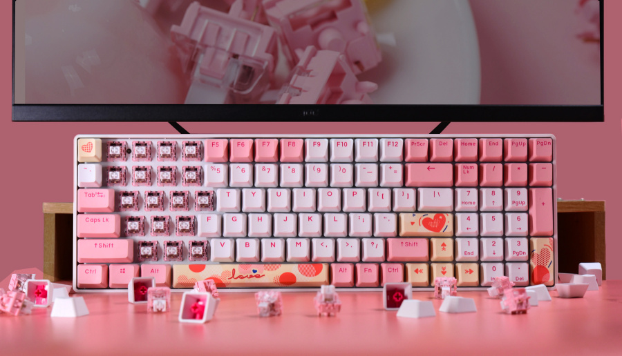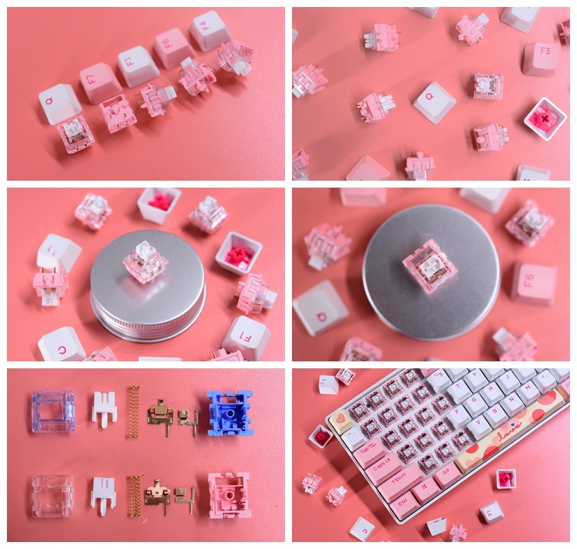 这外观看起来就很棒,粉色底座。透明上盖加白色轴芯,这么粉嫩。设计师不是个猛男就是个少女。