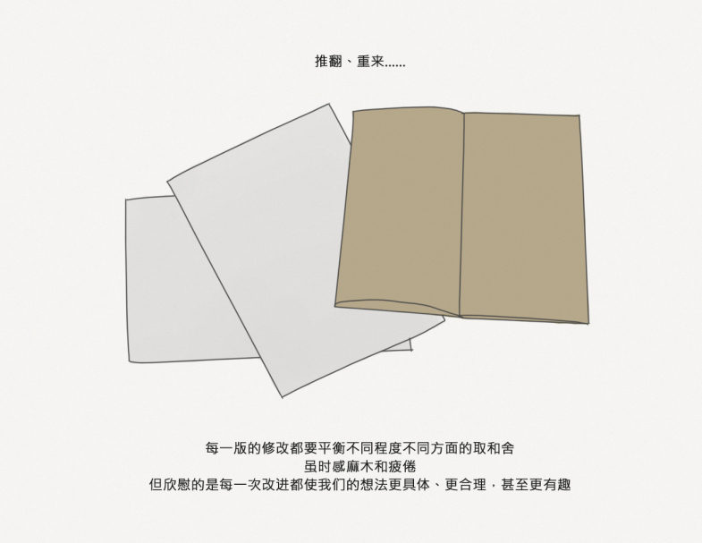 工作量较大,难点较多,做着做着,就会跳脱出几个“不错,但不合适”的点子。