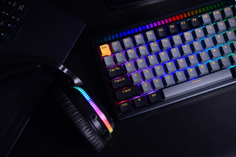 达尔优的灯光也是非常出名的,这次在灯光方面直接拉满,除了背光以外还特意加入了拾音灯带,美中不足的就是每次开关键盘后拾音灯带都会默认调回拾音模式。即使在键帽不透光的情况下,达尔优A84pro的灯效和亮度表现都非常棒。