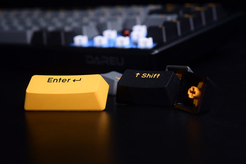作为国内的老牌外设,达尔优的PBT双色注塑键帽无论是外观还是手感都很细腻舒服,而且这次的黑金配色高级感也很足,和以往的产品对比,键盘整体外观可以说得到了质的提升。