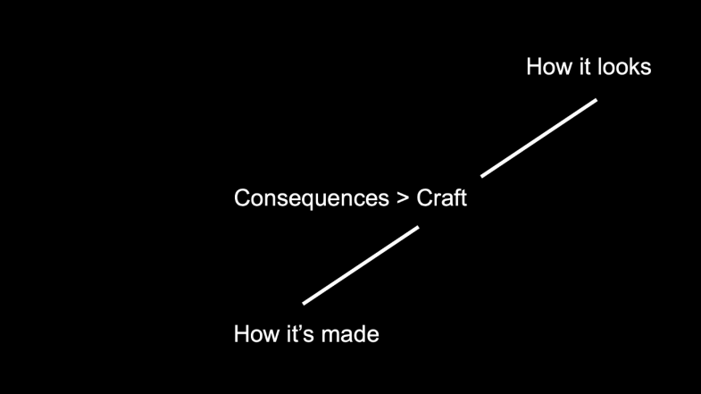 建筑学生常被教导要对建筑师的的工作和生活方式保持尊重:我们画的线会被转化为劳动力、废弃物、碳排放、观念、便利性(或相反的)和其他事物。然而大部分学校的设计教育都只专注于工艺问题上,我们花费大量时间去画线,希望能创造出充满想像力和能引起共鸣的模型,痴迷于(复制)世界各地著名建筑的细节。如果你想设计出真正特殊的建筑,这些非常重要,但不是唯一。