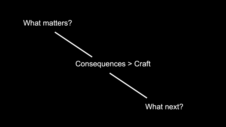 如果把箭头反转,关注结果>工艺,那么重点就是设计有意义的东西(选择正确的问题去解决)和处理我们设计的结果(对我们接受的挑战做出有意义的反应)。