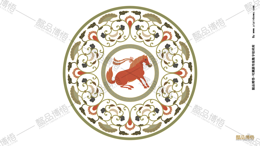 先秦至唐代:早期马纹写实而雄浑,青铜器上的侧影线条朴拙有力;汉代“马踏飞燕”以灵动身姿定格神韵;唐代流行“三花饰”皇家马纹,并融入波斯卷草纹等异域元素,尽显开放包容的大唐气象。