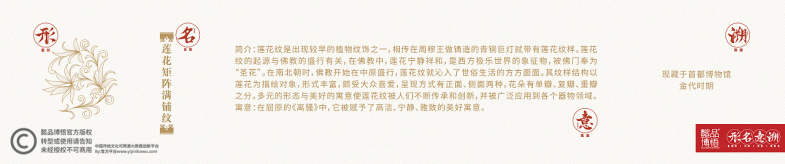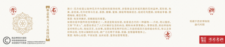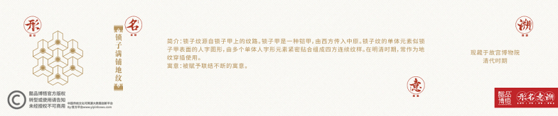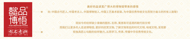 纹样---这个被我们忽视遗忘的中国传统文化的一部分,我们秉承着“中国人,为中华文化传承而努力,为中国设计崛起而奋斗”的宏大理想,着重把博物馆里文物跨越的思想理念,价值标准,审美风范等优秀传统文化,转化为人们的精神追求和行为习惯,优秀传统文化以设计为驱动,精致优美的纹饰简易明了地让全民接受。先予以科普推广,鼓励更多的人走进博物馆,读懂文物,读懂背后的时代文明,地域文明,精神文明,再深化补充设计行业在市场经营中对可靠素材的需求,对中国元素,东方元素,时代、地域元素资源不足的补充!下面欣赏一下我们整理、汇编的精美纹样吧!