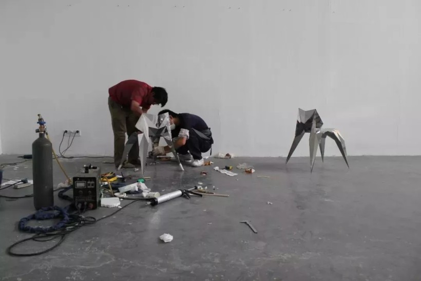 张周捷在工作室里自学焊接、切割、打磨、抛光