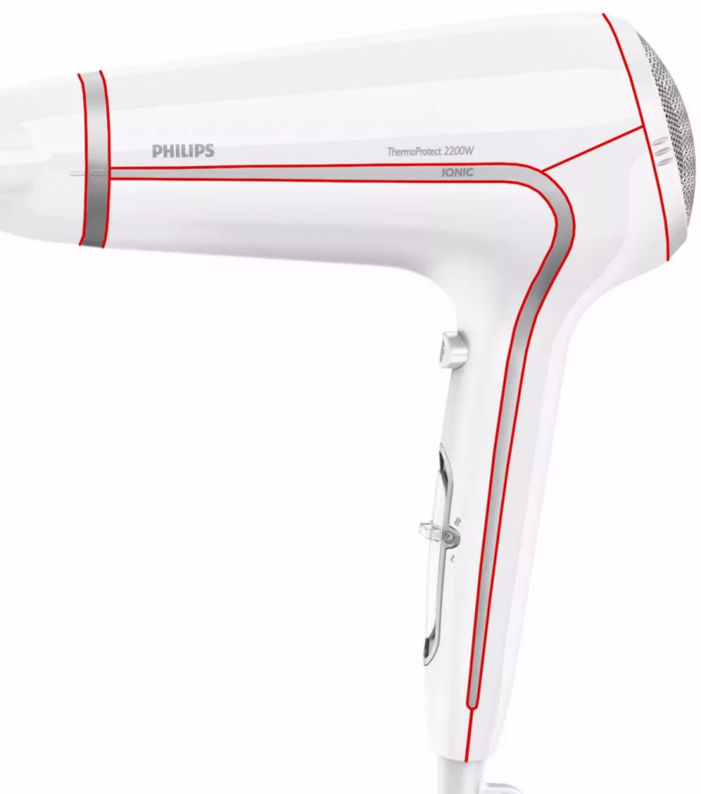 如果说第一个方向我选择了飞利浦的HP 2300w系列的吹风机作为模仿对象,那么对它进行一些研究是必不可少的。