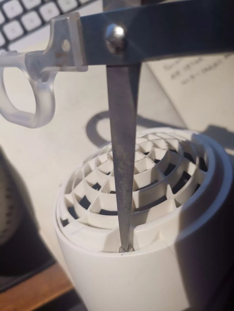 它的尾部进风口有一个网罩,把它拧下来一看。里面竟然藏着两个螺丝。