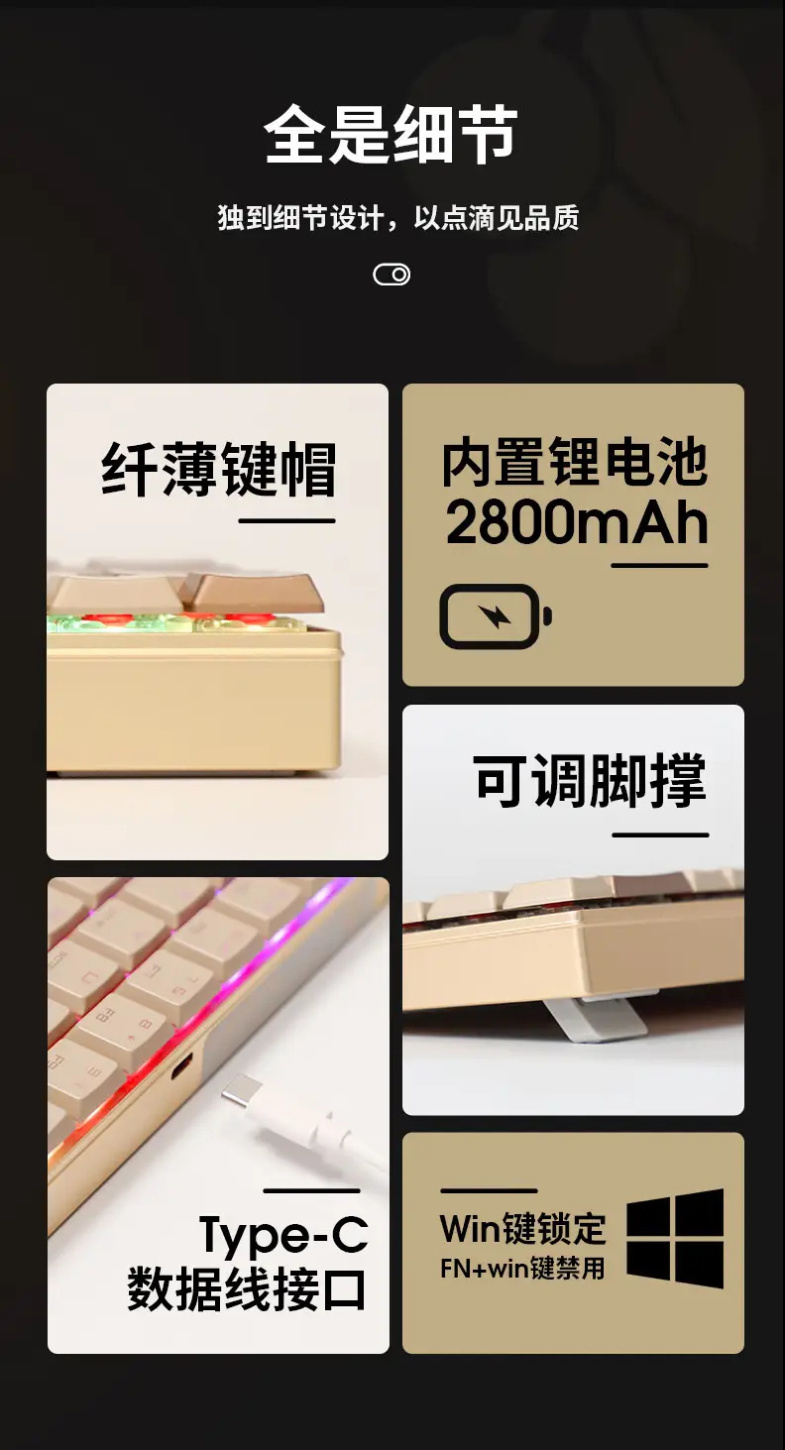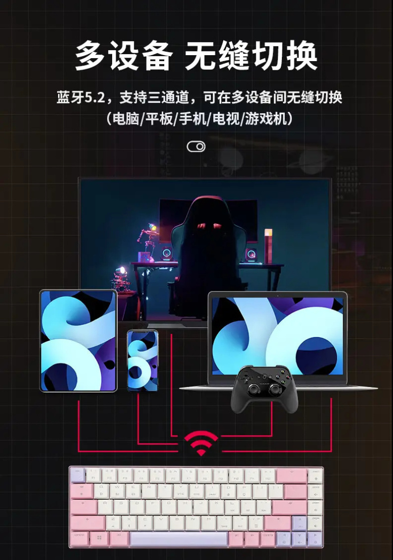 2. 极简的键盘设计上,配上兼具游戏和办公的色系,有动感的同时又不失端庄
