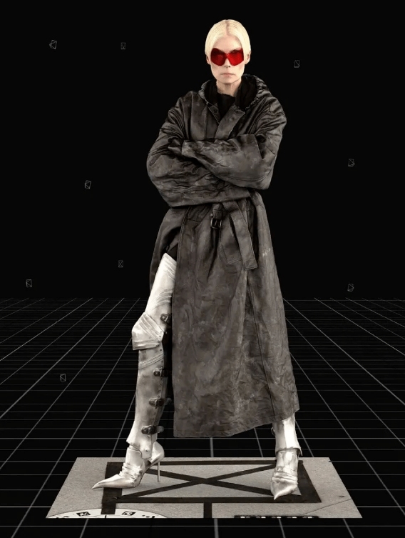 法国奢侈品牌巴黎世家(Balenciaga)在2021秋冬系列服饰中以废土为灵感,展出褶皱夹克、用破碎旧货制成的外套以及带有破坏感的单品,借此展现未来主义式的废土风与生活的张力。
