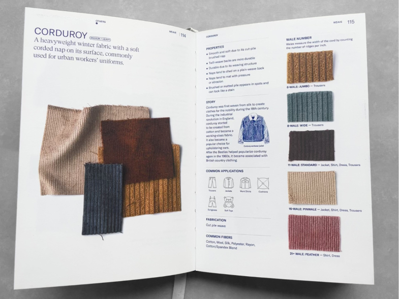 看名字就知道这是一本关于面料的百科全书。从不同纤维,混合成线,编织成布料,再到不同的针织纹理,动物皮料,书中介绍了他们的特性,制作和应用。