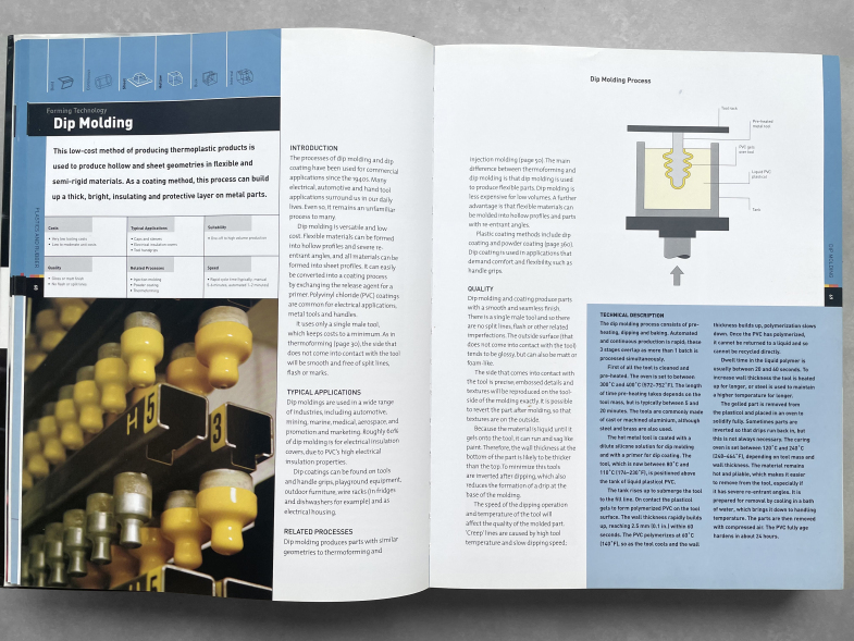 和刚刚那本材料的是同一系列的,介绍了针对不同材料各式各样的加工工艺,同样是分了几大类,有成型,切割,连接和表面处理,同时也简单介绍了一些材料,对从业者的实用性很高。每一种工艺都配有清晰的图解和真实案例的运用场景来帮助你更好的理解工艺。这本和上面那本都有中文翻译版(中文名:写给设计师的工艺全书),适合中文读者。