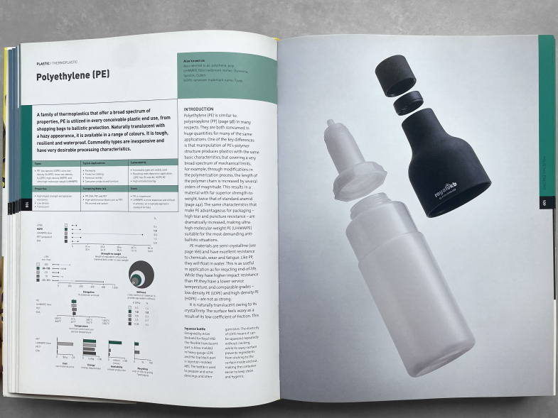 这是一本实用性很强的介绍材料的工具书,包括了金属,塑料,各种木材,植物,动物皮毛,矿石。每一个小的章节会详细介绍一种材料的化学结构,材料属性,如何使用和案例,以及视觉效果。查阅这本书是快速了解一种材料非常好的途径。(中文版名称:材质活用圣经 工业设计师必备的材质运用事典)
